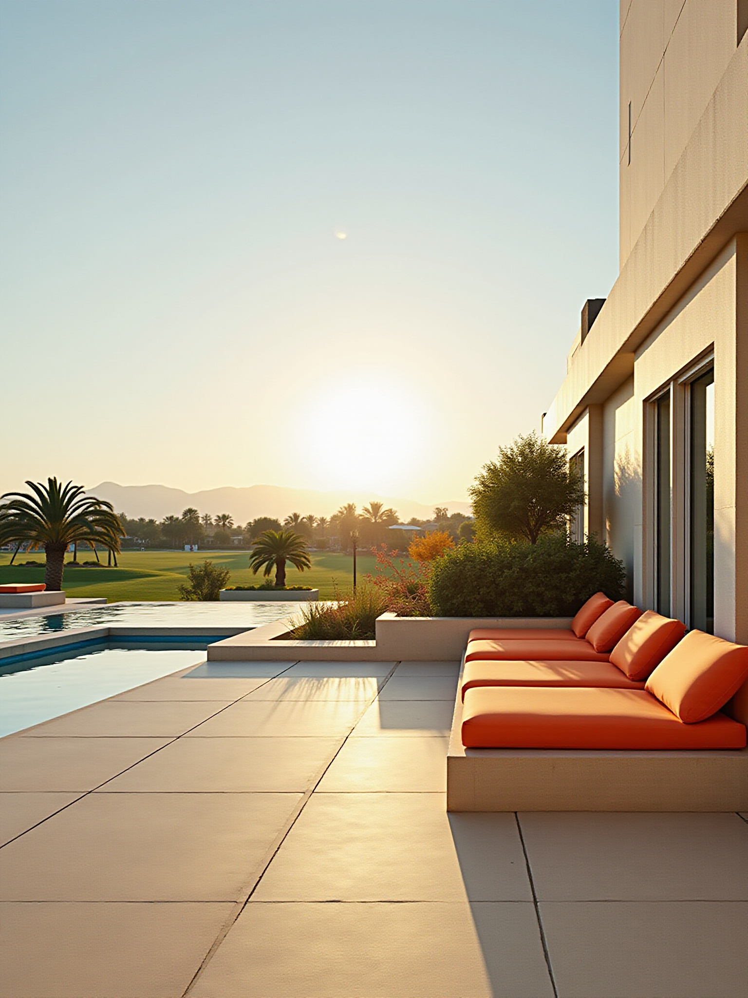 Onze vakantiewoning is gunstig gelegen nabij vijf golfbanen, met directe toegang tot zwembaden en prachtige parkuitzichten.